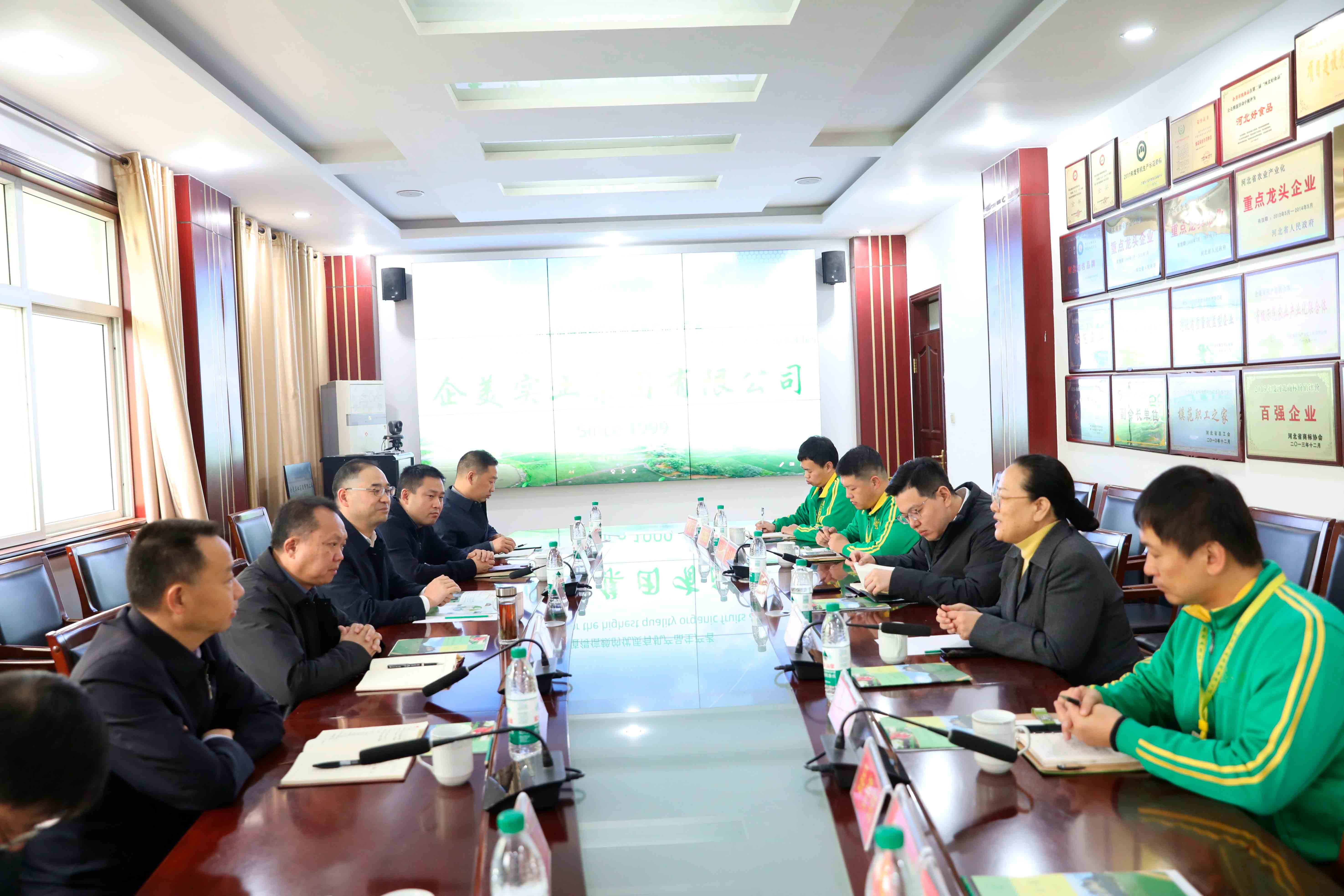 近日,河北省農業農村廳發展規劃處處長單守林一行到企美實業集團調研指導工作。邯鄲市農業農村局梁斌副局長、發展規劃處李志勇處長、永年區農業農村局總工程師任肅科等陪同調研。